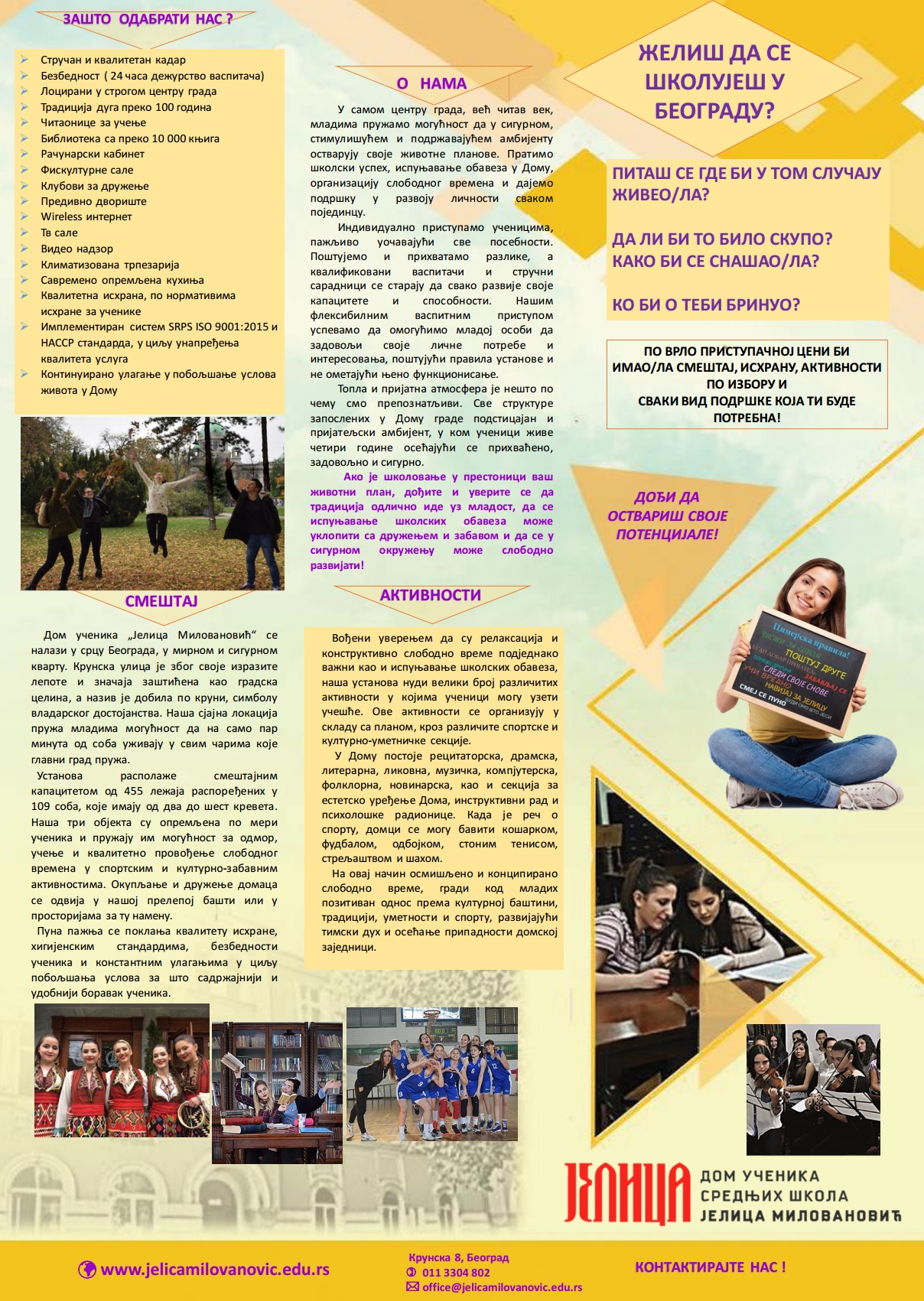 Школовање у Београду – Дом ученика средњих школа “Јелица Миловановић” Posted on March 14, 2024March 14, 2024 By slavko No Comments on Школовање у Београду – Дом ученика средњих школа “Јелица Миловановић” Школовање у Београду – Јелица МиловановићDownload 2024