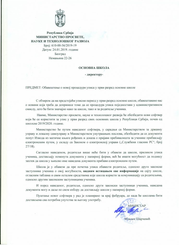 Допис о упису у први разред Posted on March 8, 2019March 8, 2019 By slavko No Comments on Допис о упису у први разред 2015-2016