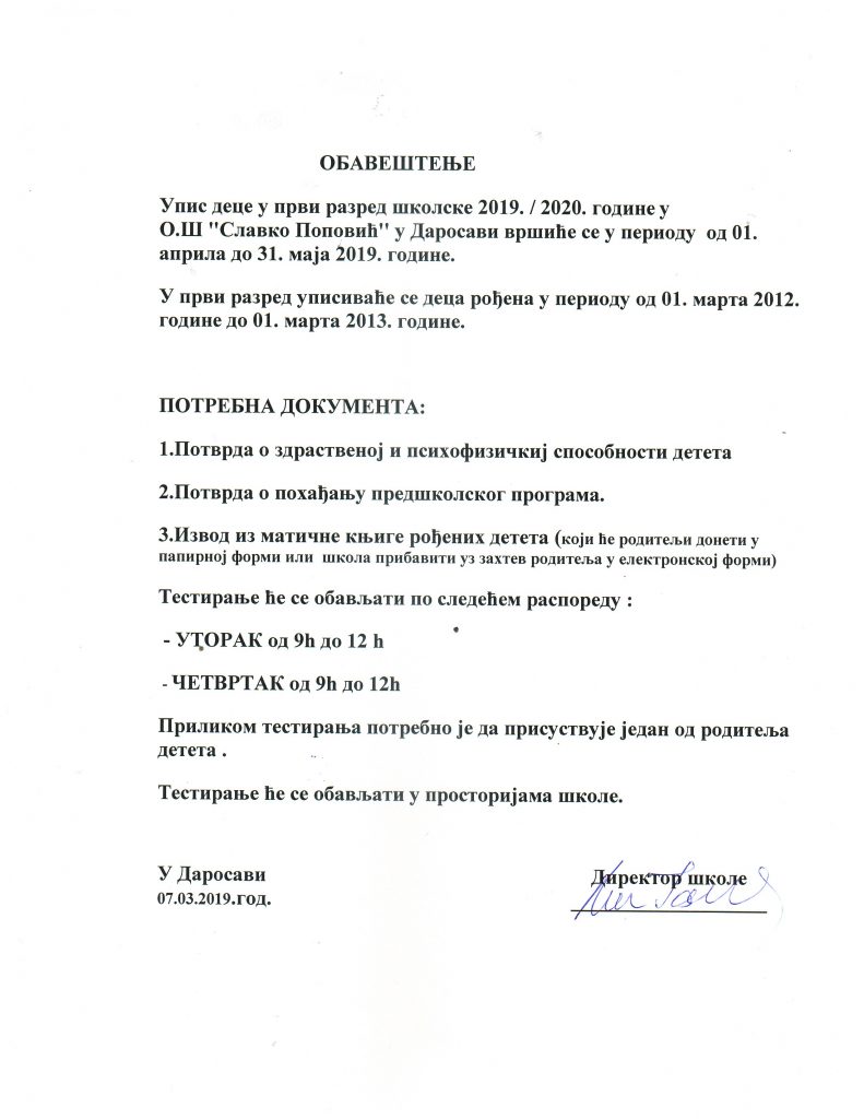 Posted on March 8, 2019September 25, 2020 By slavko No Comments on Упис у први разред школске 2019./2020. године